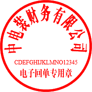 我公司名称已由“西电集团财务有限责任公司”正式变更为“中电装财务有限公司”,为向您提供更加安全便捷的服务,我司将于2025年10月1日起启用"电子回单专用章"电子印章(以下简称"电子回单专用章"),并打印于我司交易类业务凭证上,电子回单专用章印模颜色为红色,形状为圆形,内部包含中电装财务有限公司机构名称、印章章名和18位用印防伪码。印模样式示例如下: