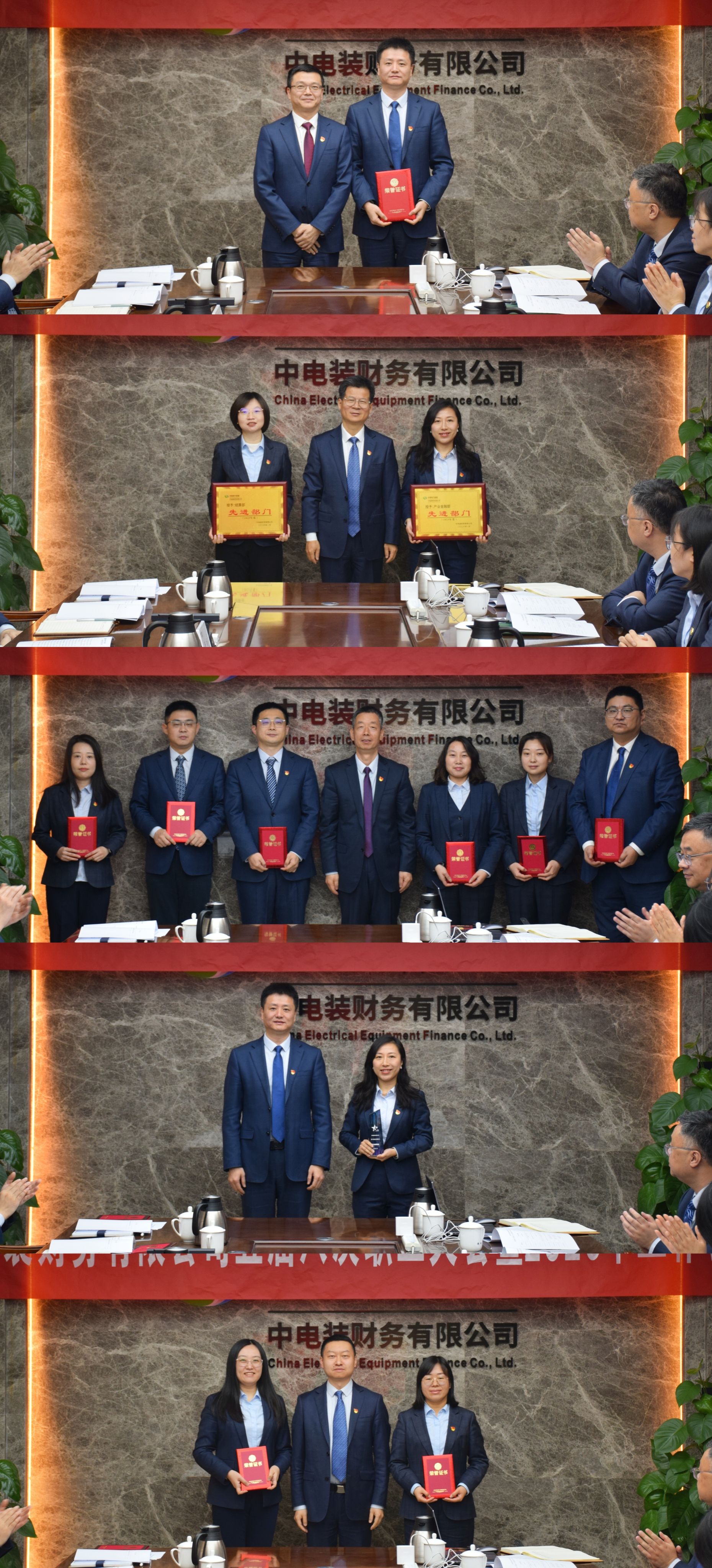 中电装财务公司党总支书记、总经理李亚军作题为《锚定目标全面发力,坚定信心 乘势而上,奋力开启“十五五”高质量发展新征程》的工作报告。党总支委员、副总经理程刚主持会议、传达学习中国电气装备工作会议精神并做总结讲话。党总支委员、总经理助理韩金辉宣读表彰决定,金融高管及全体干部职工参加了会议。